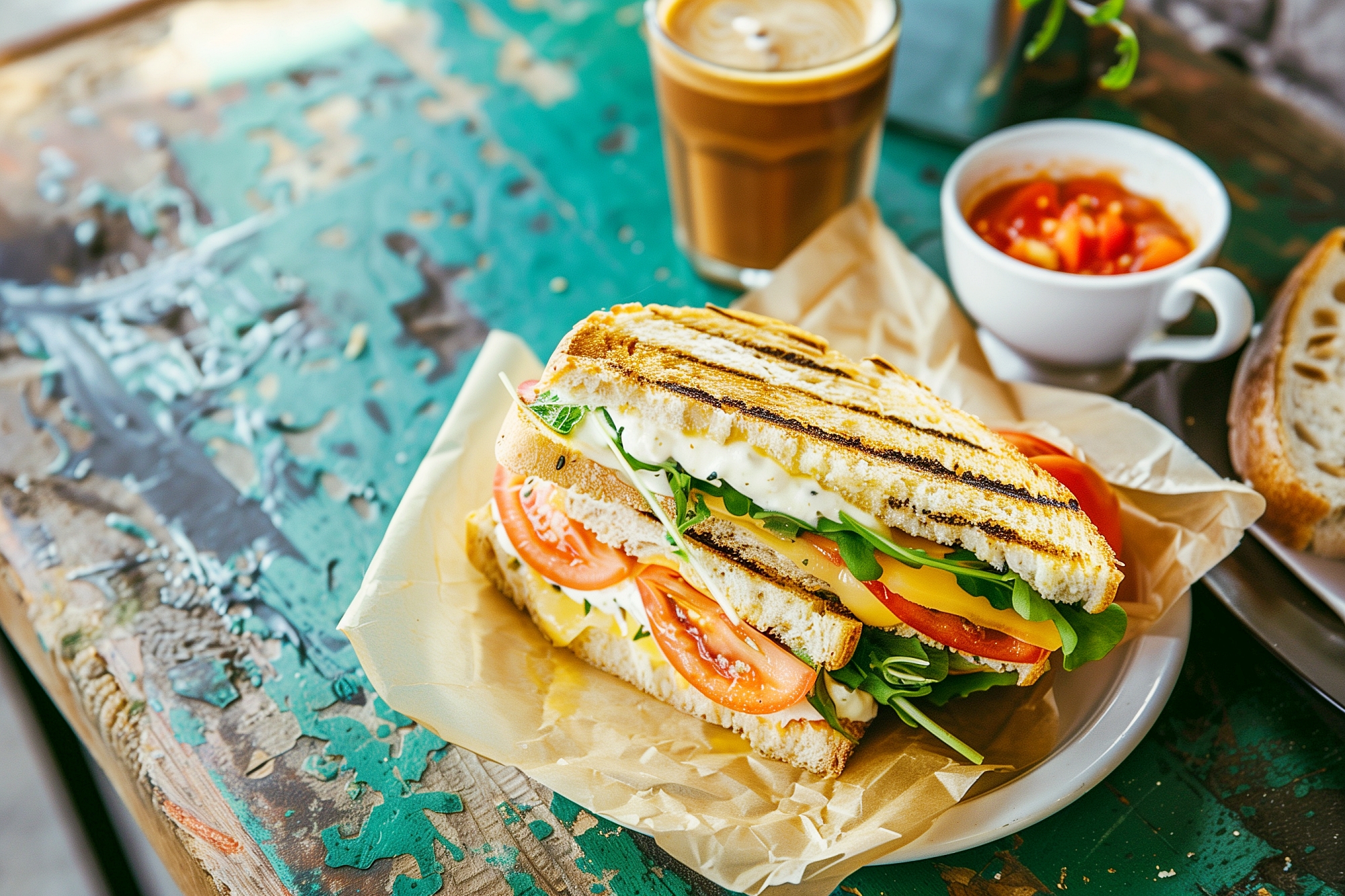検索タグ:カフェ、cafe、店内、飲食店、オシャレ、お洒落、おしゃれ、テーブル、フリー素材、フリー画像、AI生成画像、ランチ、お昼ごはん、昼ご飯、食べ物、食事、フード、喫茶店、メニュー、サンドウィッチ、モーニング、朝食、朝ごはん、朝ご飯