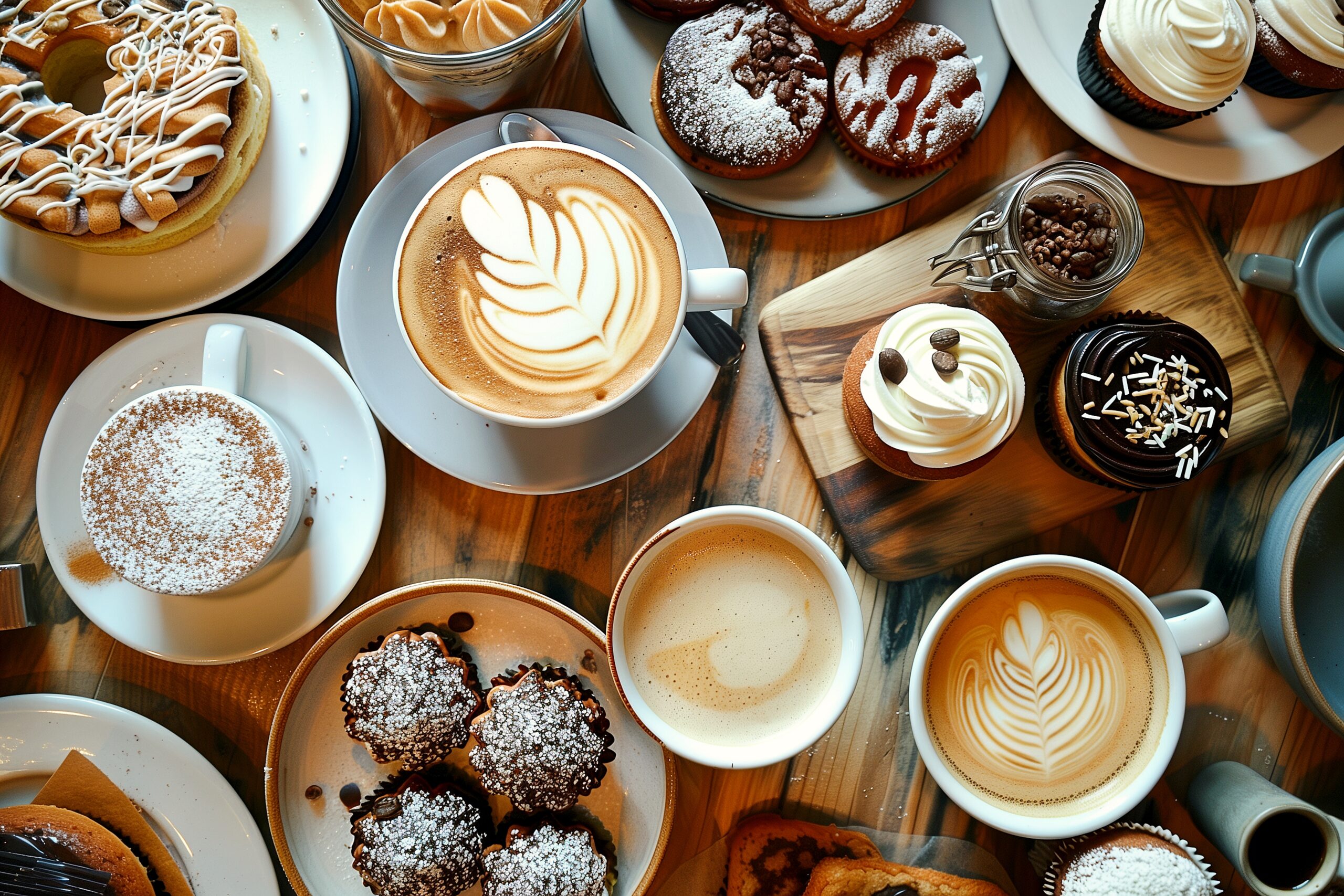 検索タグ:カフェ、インテリア、cafe、interior、店内、飲食店、オシャレ、お洒落、おしゃれ、ホットコーヒー、フリー素材、フリー画像、AI生成画像、カフェラテ、モーニング、コピースペース、テキストスペース、無料画像、ビュッフェ、バイキング、食べ放題、アフタヌーンティー、グルメ、ラテアート