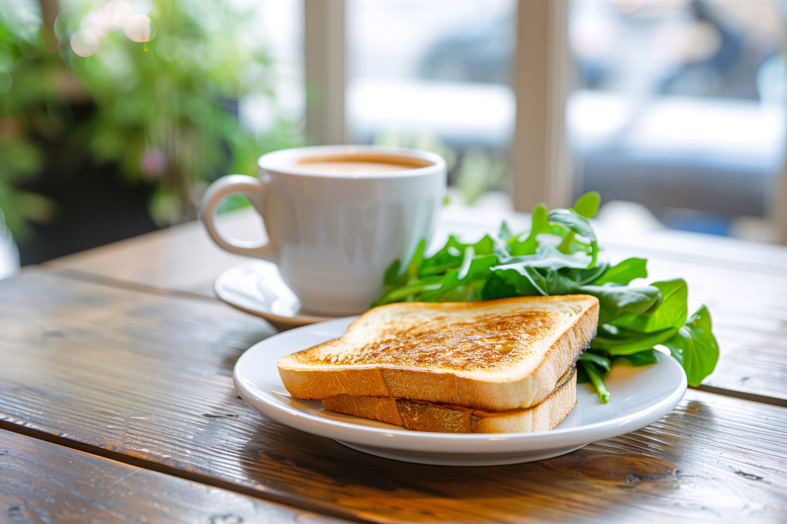 検索タグ:カフェ、cafe、店内、飲食店、オシャレ、お洒落、おしゃれ、テーブル、フリー素材、フリー画像、AI生成画像、モーニング、朝ごはん、朝ご飯、朝食、トースト、食パン、食べ物、食事、フード、