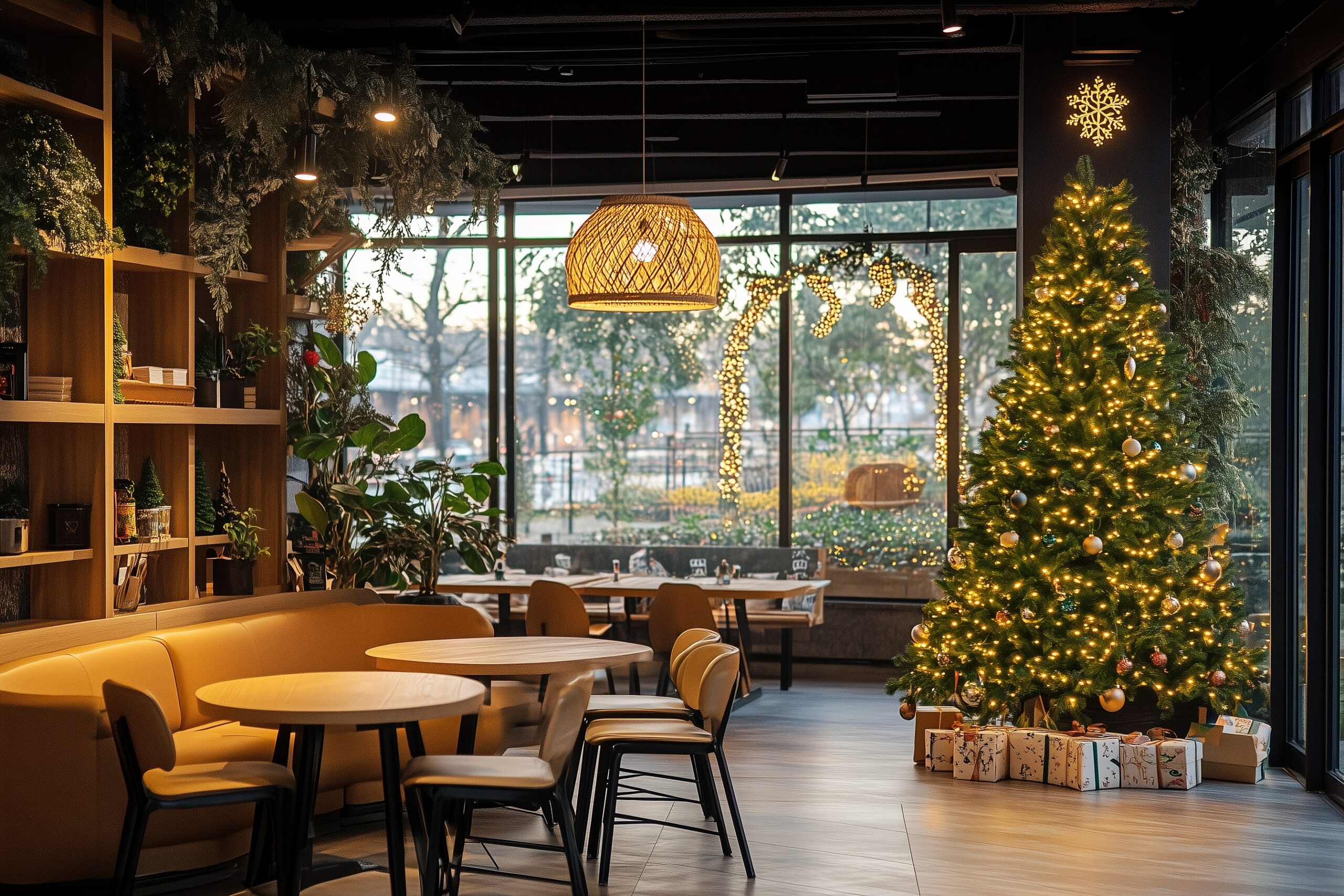 検索タグ:カフェ、インテリア、cafe、interior、店内、飲食店、オシャレ、お洒落、おしゃれ、フリー素材、フリー画像、、free、image、materials、AI生成画像、内装、内観、室内、店舗、お店、モダン、壁紙、ZOOM背景、配信用、背景素材、アイキャッチ、サムネイル、喫茶店、レトロ、クリスマス、クリスマスツリー、飾り、デコレーション、イベント、12月
