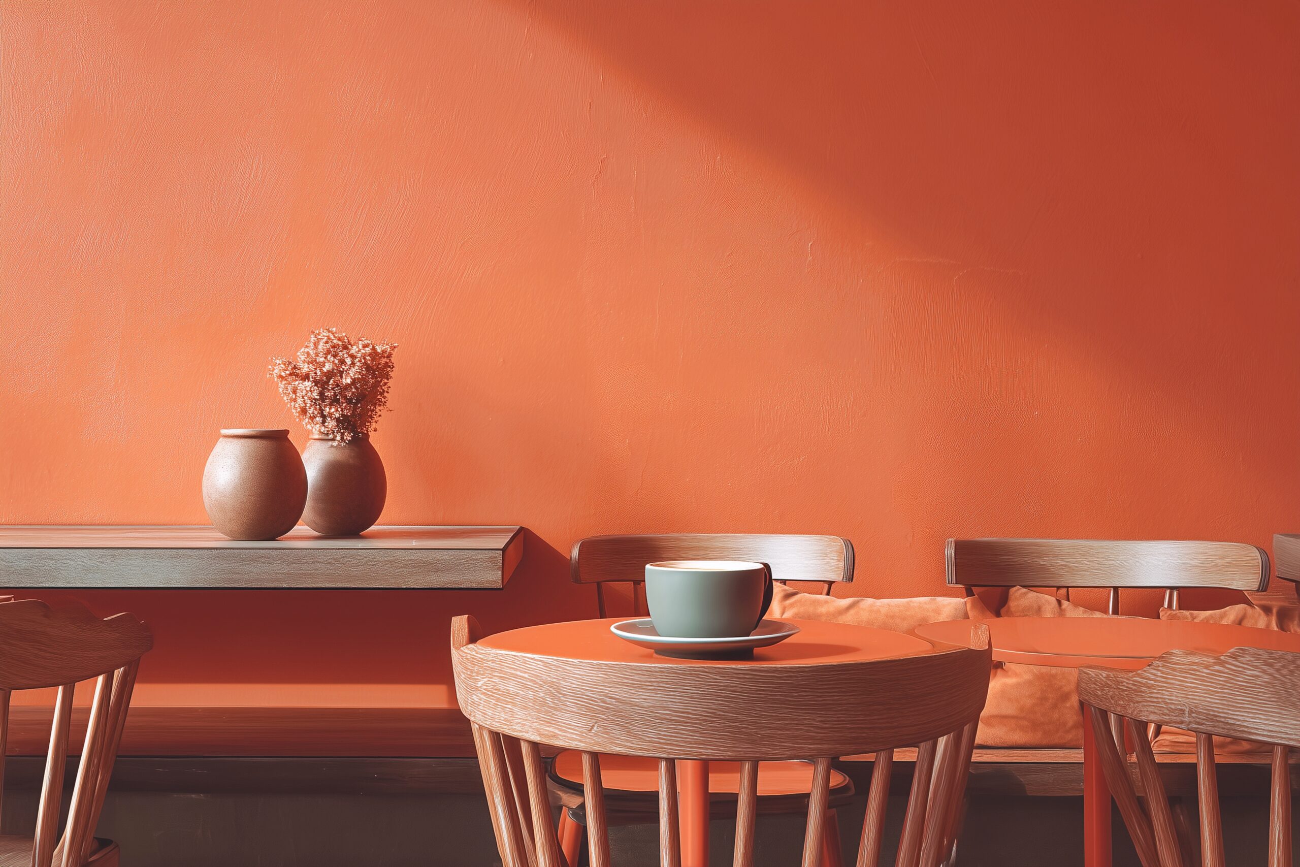 検索タグ:カフェ、インテリア、cafe、interior、店内、飲食店、オシャレ、お洒落、おしゃれ、フリー素材、フリー画像、AI生成画像、コピースペース、テキストスペース、無料画像、カフェテーブル、カフェタイム、table、テーブル席、インテリア、室内、内装、内観、free image、royalty-free images、テラコッタオレンジ、淡い、パステルカラー、ナチュラル、アーシー