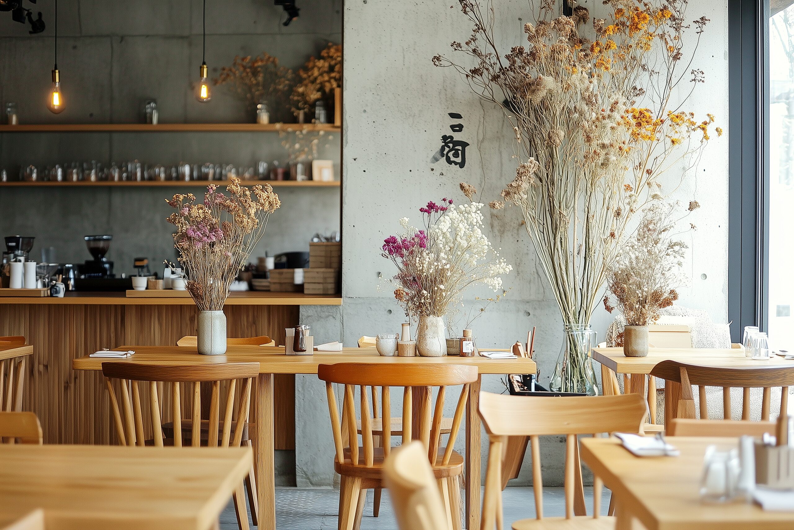 検索タグ:カフェ、インテリア、cafe、interior、店内、飲食店、オシャレ、お洒落、おしゃれ、フリー素材、フリー画像、AI生成画像、内装、内観、室内、店舗、お店、モダン、壁紙、ZOOM背景、配信用、背景素材、アイキャッチ、サムネイル、喫茶店、ドライフラワー、お花、花