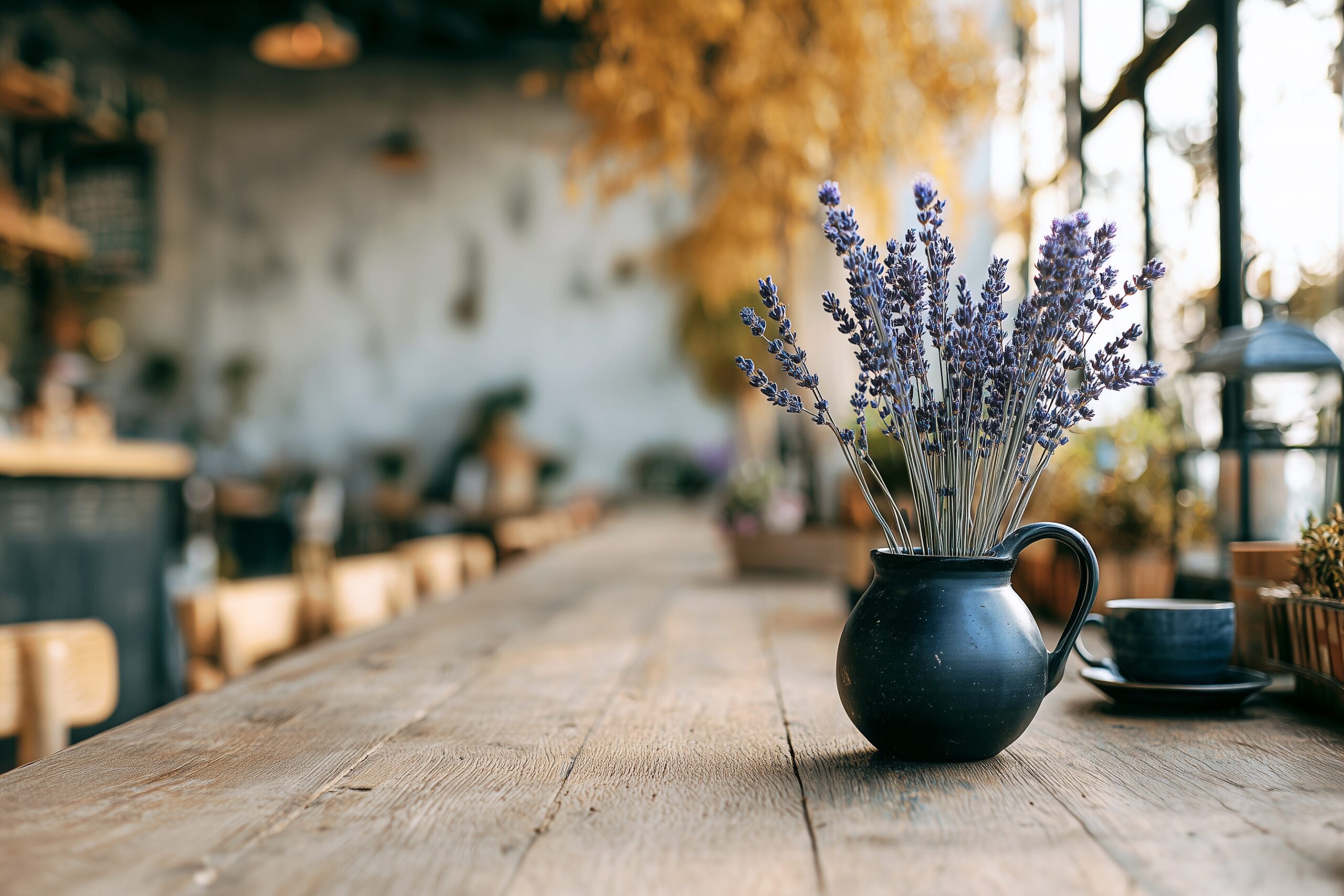 検索タグ:カフェ、インテリア、cafe、interior、店内、飲食店、オシャレ、お洒落、おしゃれ、フリー素材、フリー画像、AI生成画像、コピースペース、テキストスペース、無料画像、カフェテーブル、カフェタイム、table、テーブル席、インテリア、室内、内装、内観、free image、ラベンダー、ドライフラワー、lavender、dryflower、花、紫、パープル、purple