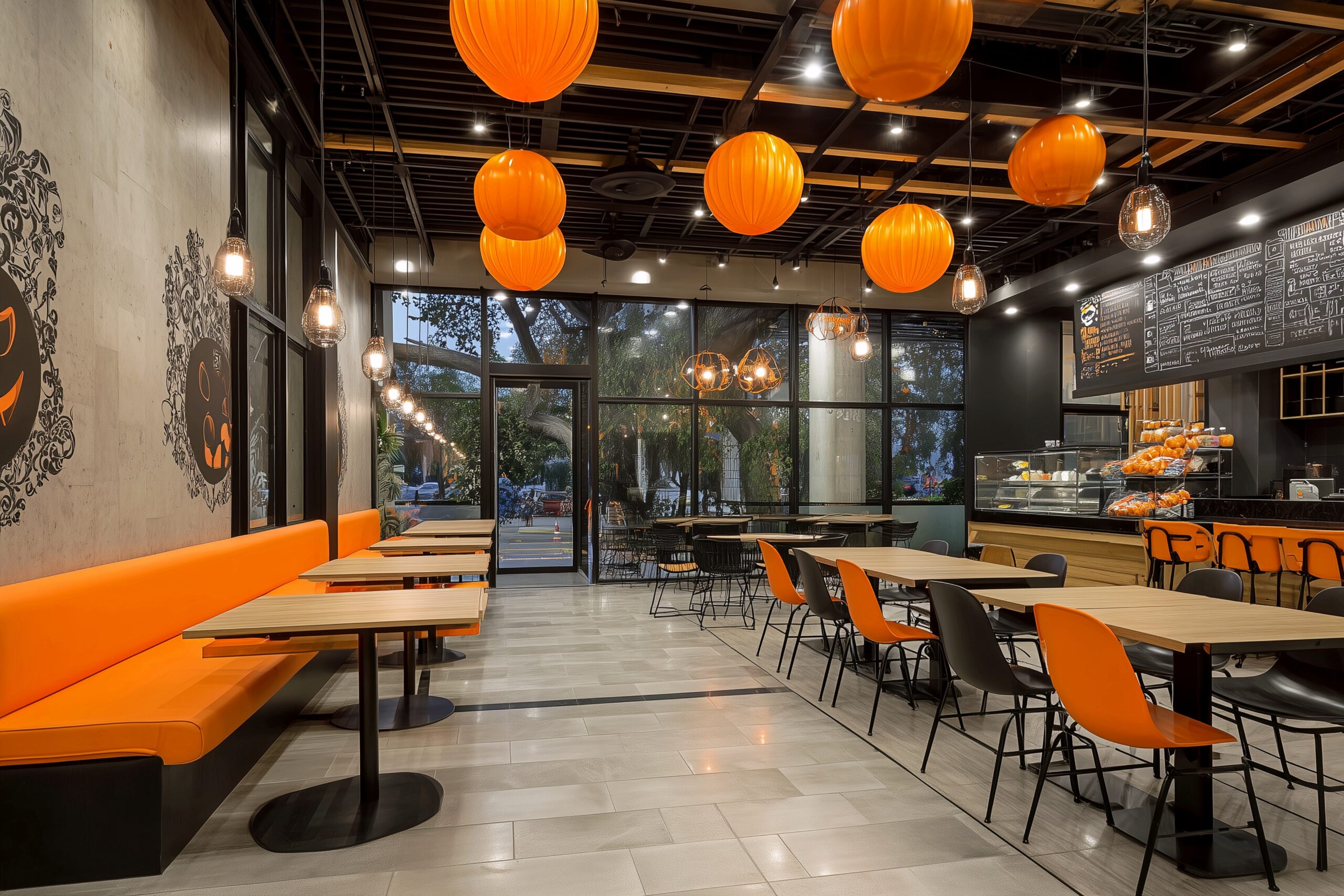 検索タグ:カフェ、cafe、飲食店、オシャレ、お洒落、おしゃれ、建物、建築、お店、店舗、フリー素材、フリー画像、AI生成画像、喫茶店、秋、Autumn、オータム、モダン、季節、free image、インテリア、innteria、内装、内観、ハロウィン、イベント、装飾、10月、10月31日、ハロウィーン、Halloween