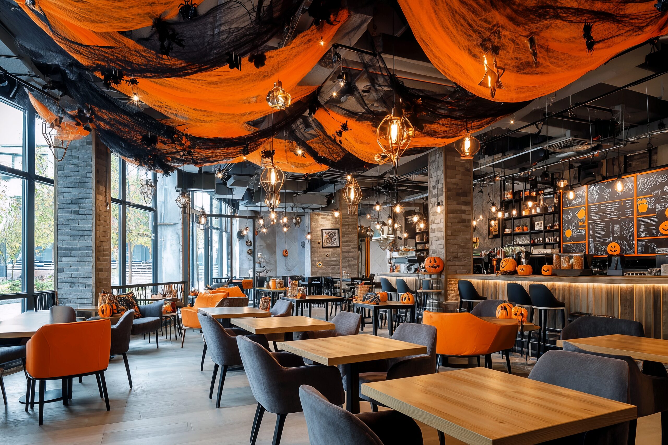 検索タグ:カフェ、cafe、飲食店、オシャレ、お洒落、おしゃれ、建物、建築、お店、店舗、フリー素材、フリー画像、AI生成画像、喫茶店、秋、Autumn、オータム、モダン、季節、free image、インテリア、innteria、内装、内観、ハロウィン、イベント、装飾、10月、10月31日、ハロウィーン、Halloween