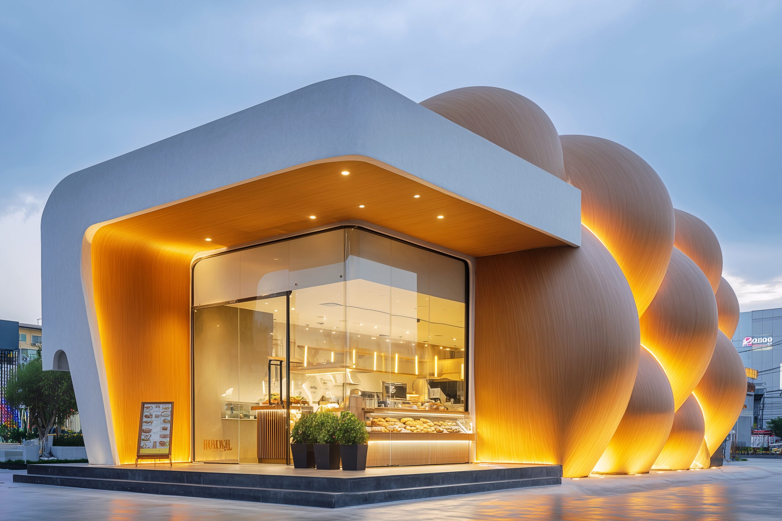 検索タグ:カフェ、cafe、飲食店、オシャレ、お洒落、おしゃれ、外観、お店、外装、店舗、フリー素材、フリー画像、AI生成画像、喫茶店、パン屋、パン屋さん、ベーカリー、bakery、Store、デザイン、かわいい、可愛い、カワイイ、キュート、cute、イメージ画像、モダン、パンの形、パン型、bread、Design