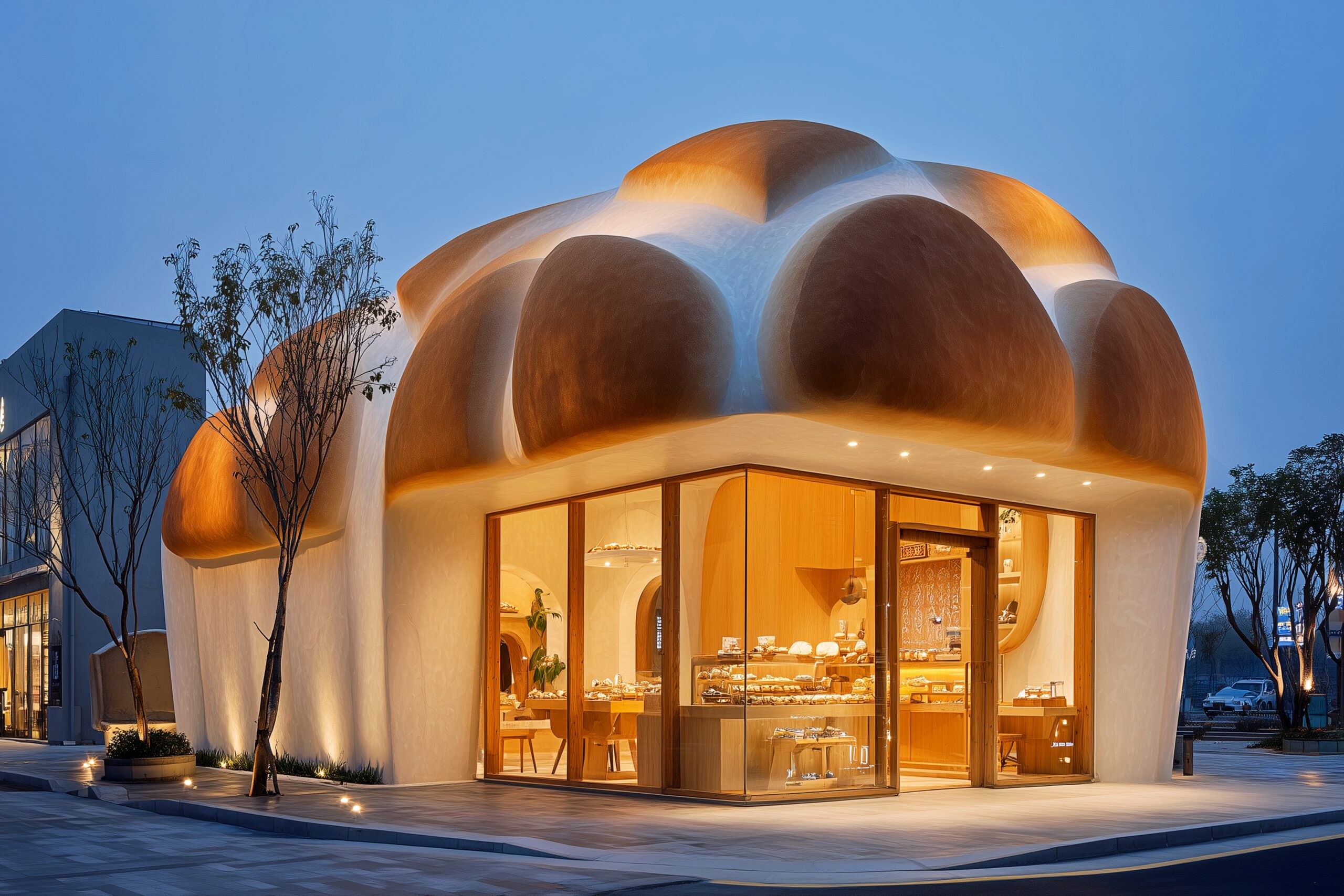 検索タグ:カフェ、cafe、飲食店、オシャレ、お洒落、おしゃれ、外観、お店、外装、店舗、フリー素材、フリー画像、AI生成画像、喫茶店、パン屋、パン屋さん、ベーカリー、bakery、Store、デザイン、かわいい、可愛い、カワイイ、キュート、cute、イメージ画像、モダン、パンの形、パン型、bread、Design