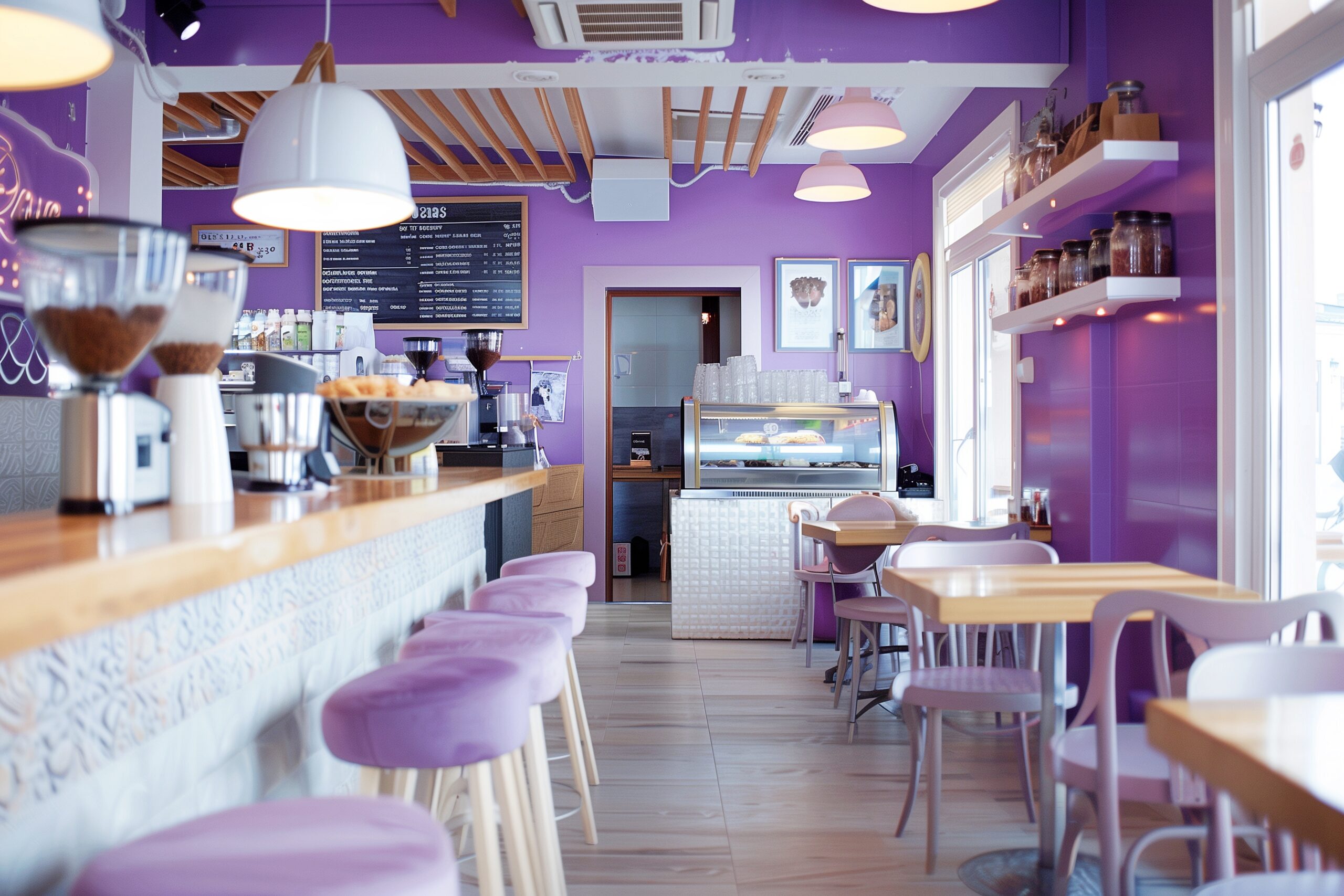 【フリー素材】パープルのカフェインテリア・内装デザイン01