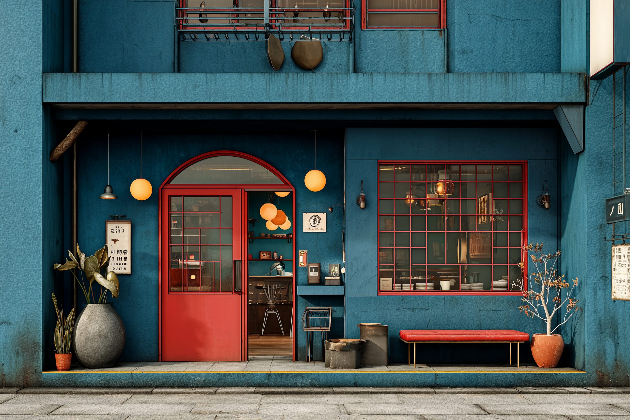 検索タグ:カフェ、cafe、飲食店、オシャレ、お洒落、おしゃれ、外観、建物、建築、お店、店舗、フリー素材、フリー画像、AI生成画像、外装、懐かしい雰囲気、喫茶店、昭和レトロ、レトロ、rétro、ビンテージ、ヴィンテージ