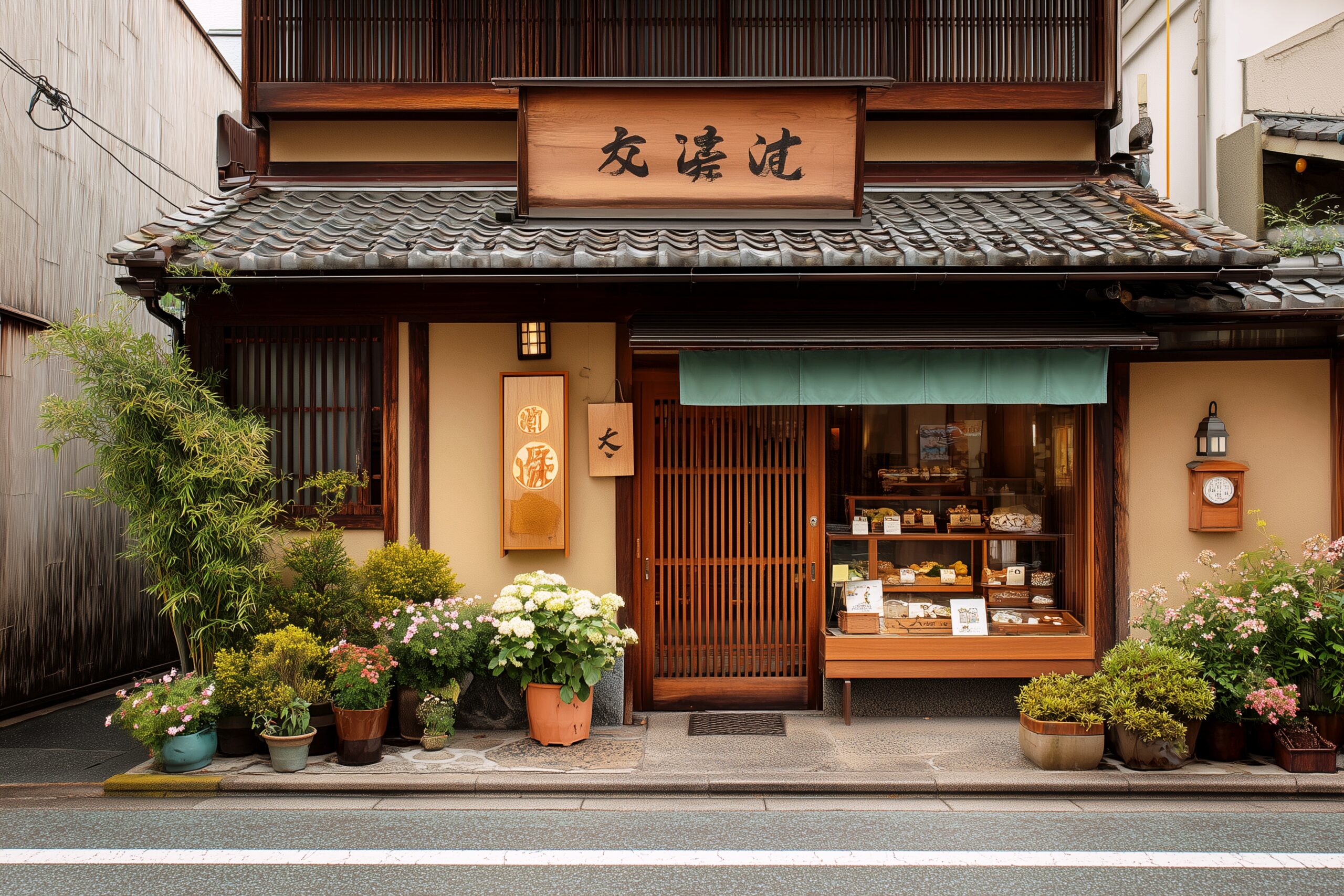 検索タグ:カフェ、cafe、飲食店、オシャレ、お洒落、おしゃれ、外観、建物、建築、お店、店舗、フリー素材、フリー画像、AI生成画像、外装、懐かしい雰囲気、喫茶店、昭和レトロ、レトロ、rétro、ビンテージ、ヴィンテージ、甘味処、kanmi dokoro、和菓子店、和風カフェ、古民家カフェ、Japanese dessert café