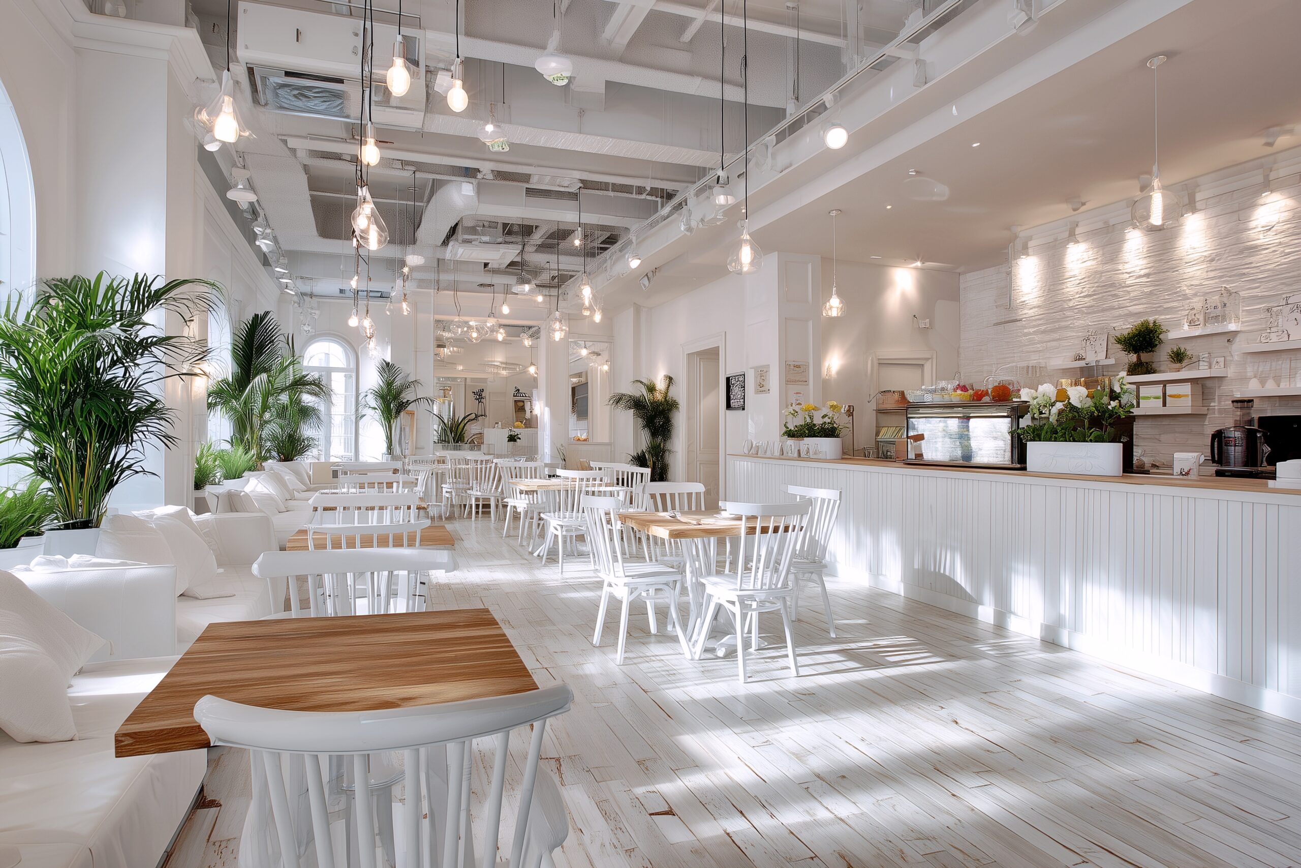検索タグ:カフェ、インテリア、cafe、interior、店内、飲食店、オシャレ、お洒落、おしゃれ、フリー素材、フリー画像、、free、image、materials、AI生成画像、内装、内観、室内、店舗、お店、モダン、壁紙、ZOOM背景、配信用、背景素材、アイキャッチ、サムネイル、喫茶店、雰囲気、涼しい、夏、サマー、白い、白、ホワイト、涼しい雰囲気、南国、爽やか、さわやか、開放的、清潔感