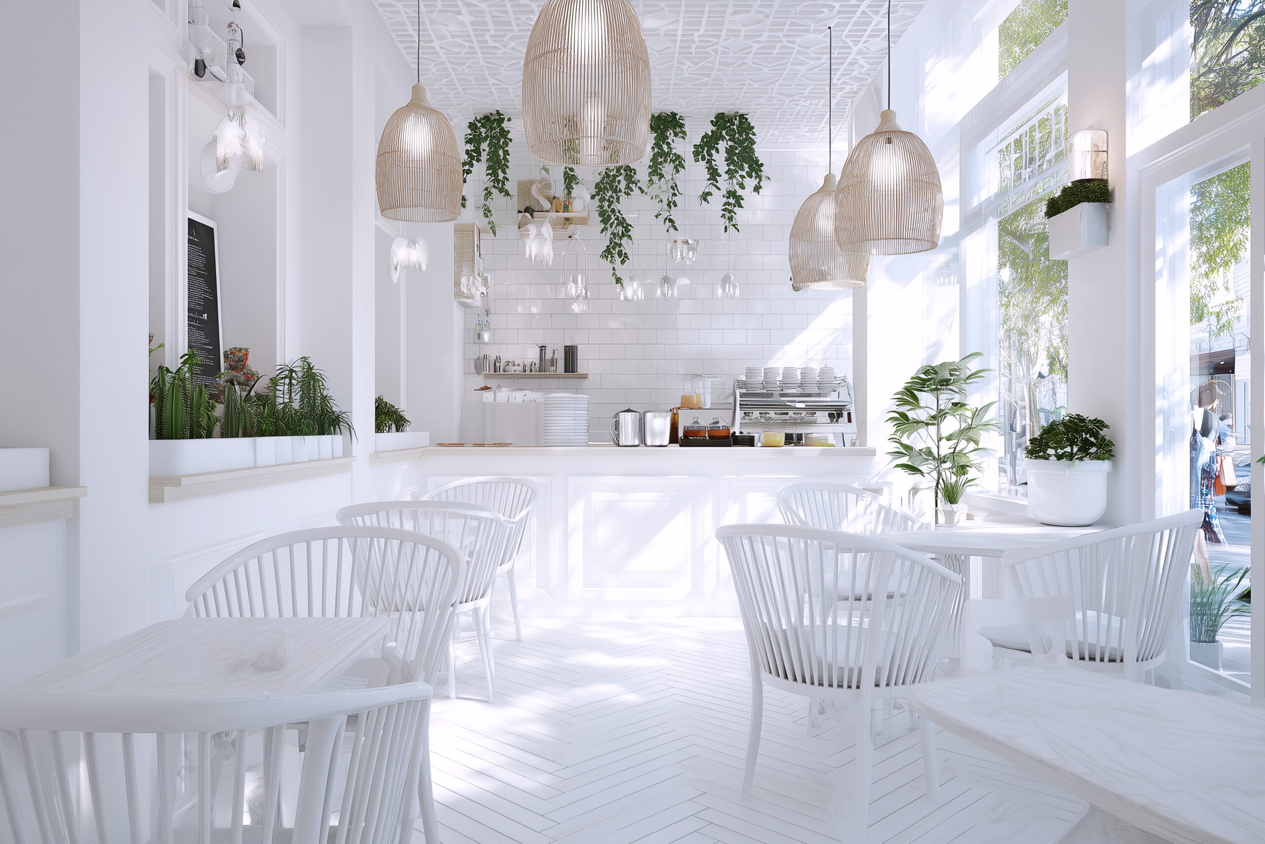 検索タグ:カフェ、インテリア、cafe、interior、店内、飲食店、オシャレ、お洒落、おしゃれ、フリー素材、フリー画像、、free、image、materials、AI生成画像、内装、内観、室内、店舗、お店、モダン、壁紙、ZOOM背景、配信用、背景素材、アイキャッチ、サムネイル、喫茶店、雰囲気、涼しい、夏、サマー、白い、白、ホワイト、涼しい雰囲気、南国、爽やか、さわやか、開放的、清潔感