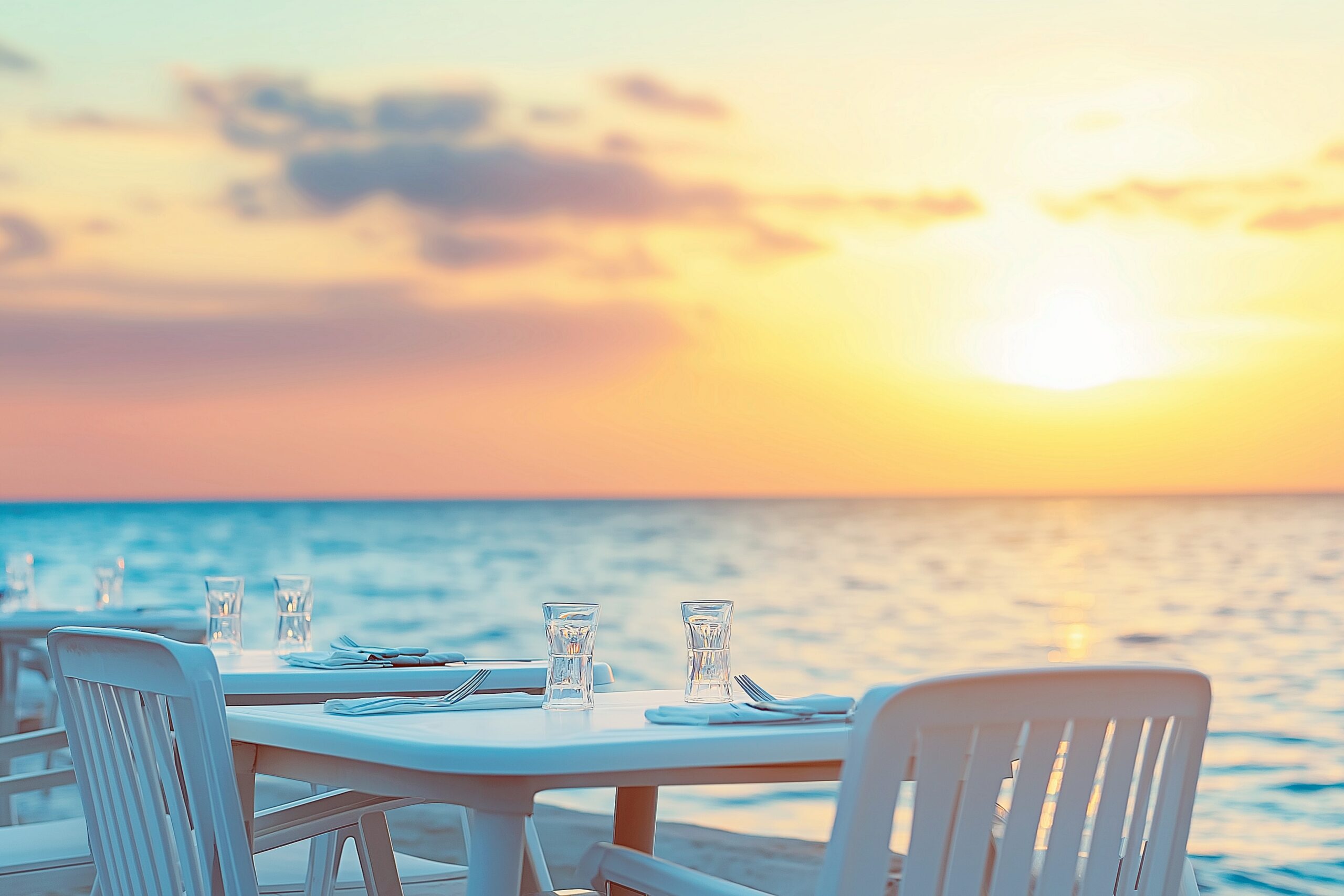 夕焼けが綺麗でおしゃれなカフェテラスの画像・フリー素材01