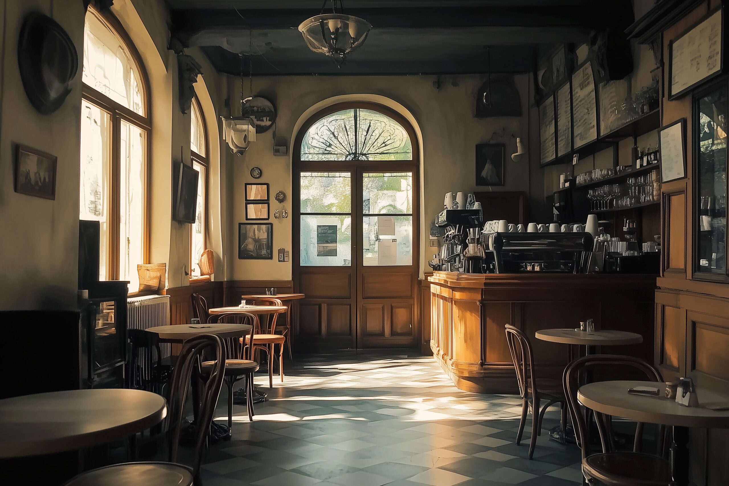 検索タグ:カフェ、インテリア、cafe、interior、店内、飲食店、オシャレ、お洒落、おしゃれ、フリー素材、フリー画像、、free、image、materials、AI生成画像、内装、内観、室内、店舗、お店、モダン、壁紙、ZOOM背景、配信用、背景素材、アイキャッチ、サムネイル、喫茶店、レトロ、小洒落た、暗い、古い、古風、昔ながら、懐かしい、世界最古、rétro、古びた