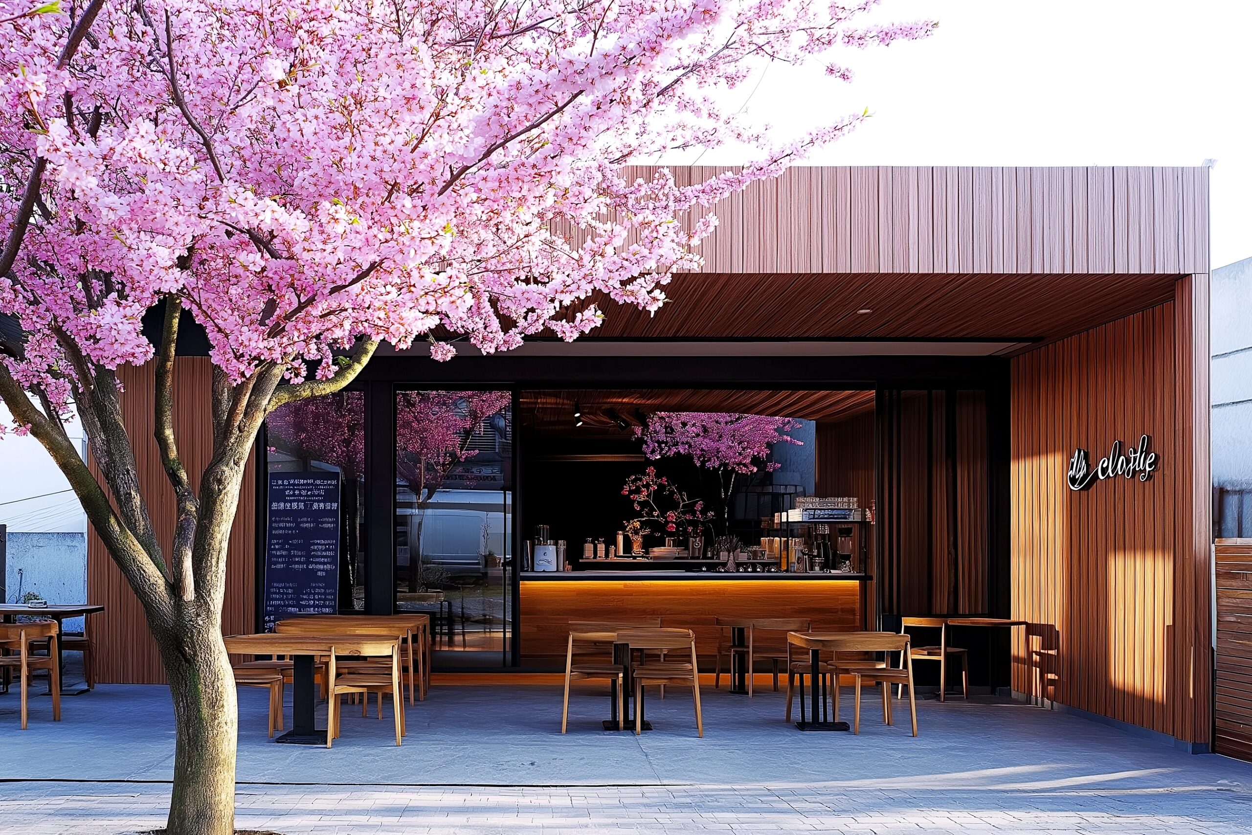 検索タグ:カフェ、cafe、飲食店、オシャレ、お洒落、おしゃれ、外観、建物、建築、お店、店舗、フリー素材、フリー画像、AI生成画像、モダン、飲食店、店、free、materials、image、shop、古民家、古い建物、レトロ、rétro、モダン、外装、桜、さくら、サクラ、春、Spring、SAKURA