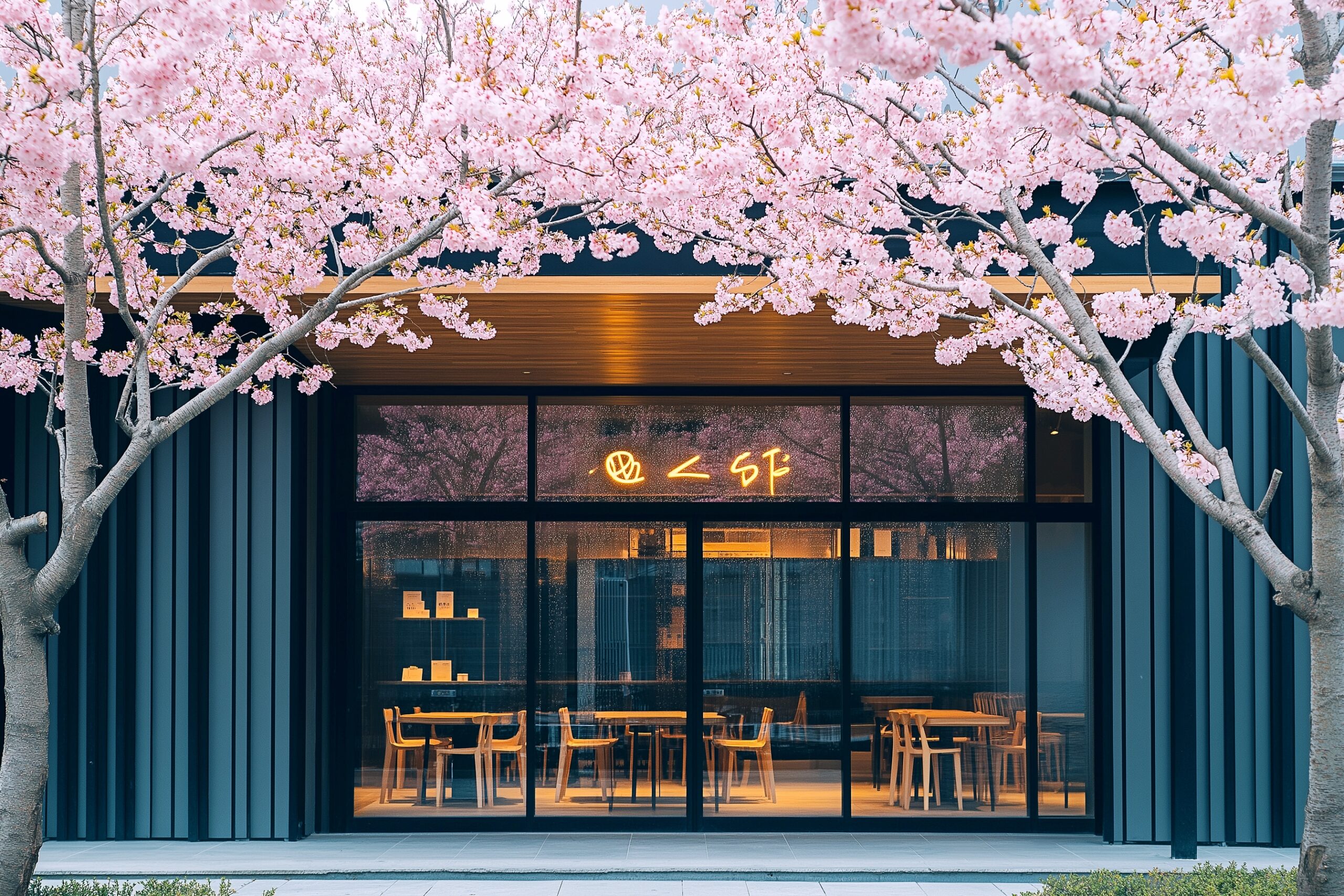 検索タグ:カフェ、cafe、飲食店、オシャレ、お洒落、おしゃれ、外観、建物、建築、お店、店舗、フリー素材、フリー画像、AI生成画像、モダン、飲食店、店、free、materials、image、shop、古民家、古い建物、レトロ、rétro、モダン、外装、桜、さくら、サクラ、春、Spring、SAKURA
