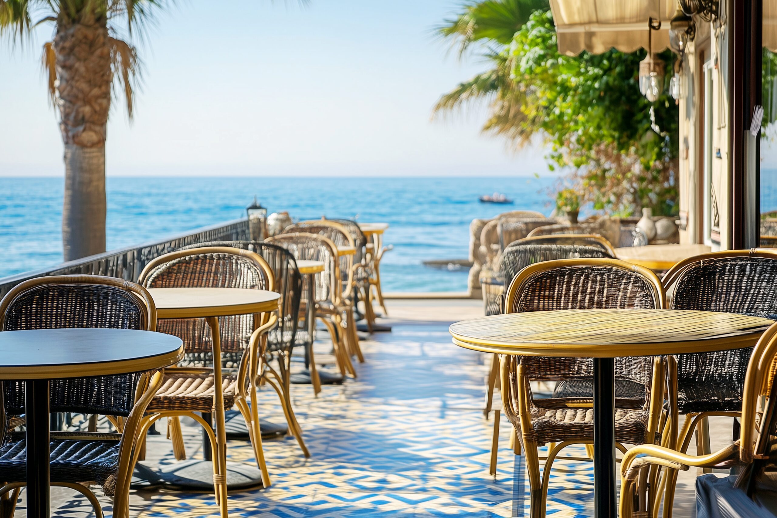 検索タグ:カフェ、cafe、オシャレ、お洒落、おしゃれ、フリー素材、フリー画像、AI生成画像、コピースペース、背景、アイキャッチ、カフェテラス、テラス、雰囲気、アウトドア、terrace、freeimage、海、海沿い、海辺、リゾート地