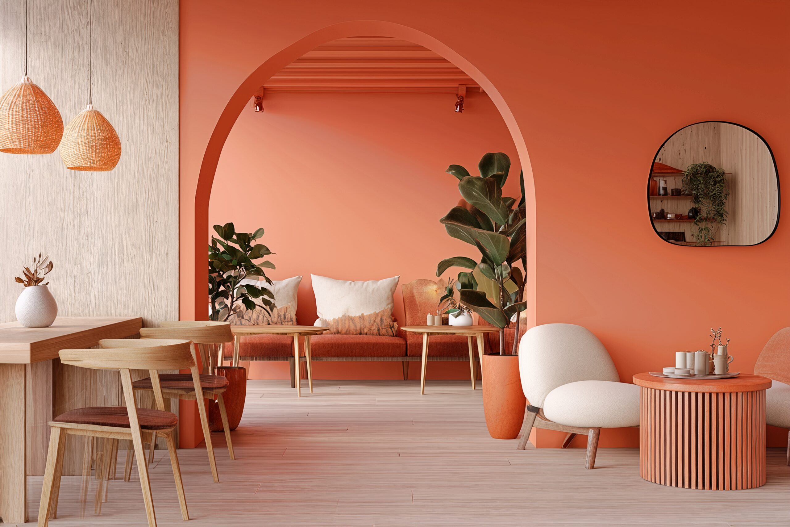 検索タグ:カフェ、インテリア、cafe、interior、店内、飲食店、オシャレ、お洒落、おしゃれ、フリー素材、フリー画像、AI生成画像、コピースペース、テキストスペース、無料画像、カフェテーブル、カフェタイム、table、テーブル席、インテリア、室内、内装、内観、free image、royalty-free images、テラコッタオレンジ、淡い、パステルカラー、ナチュラル、アーシー