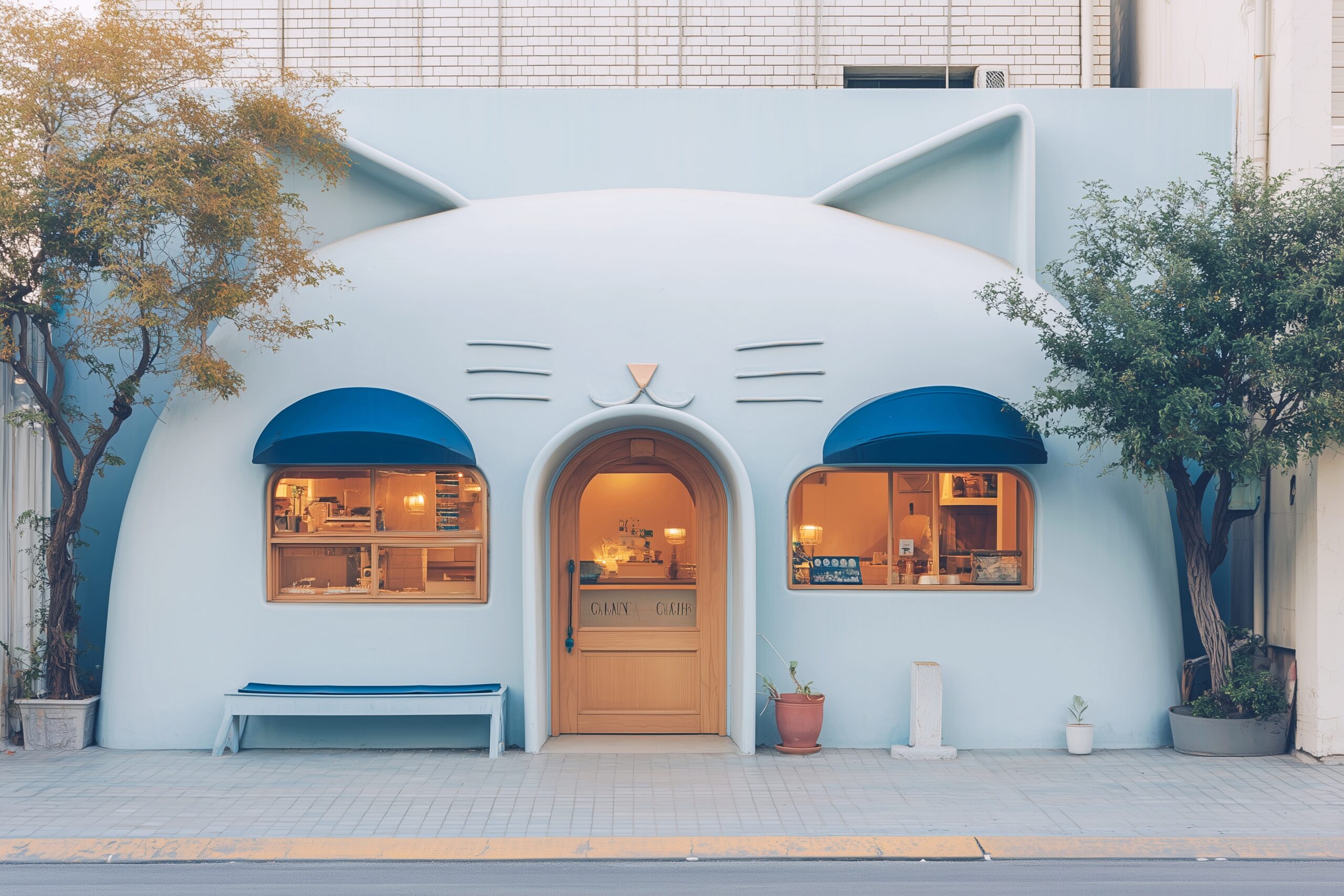 検索タグ:カフェ、cafe、飲食店、オシャレ、お洒落、おしゃれ、外観、お店、外装、店舗、フリー素材、フリー画像、AI生成画像、喫茶店、Store、デザイン、かわいい、可愛い、カワイイ、キュート、cute、イメージ画像、モダン、Design、猫、ネコ、ねこ、猫カフェ、ねこカフェ、ネコカフェ、猫型カフェ、イメージ素材