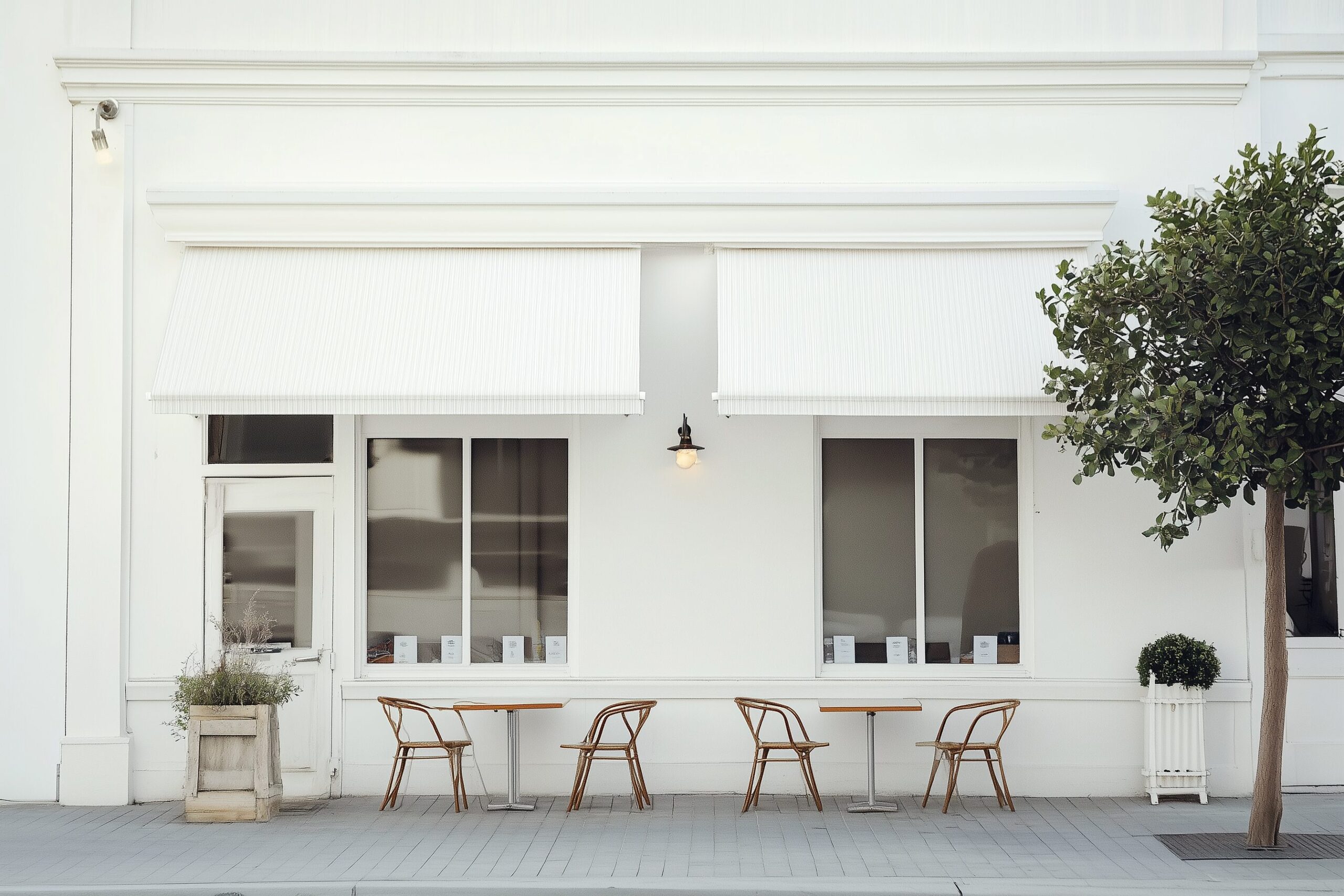 検索タグ:カフェ、cafe、飲食店、オシャレ、お洒落、おしゃれ、外観、建物、建築、お店、店舗、フリー素材、フリー画像、AI生成画像、レトロ感、海外風、小さなカフェ、デザイン、画像、外装、無料画像、前景、カフェショップフロント、イメージ、白、ホワイト、真っ白、テラス