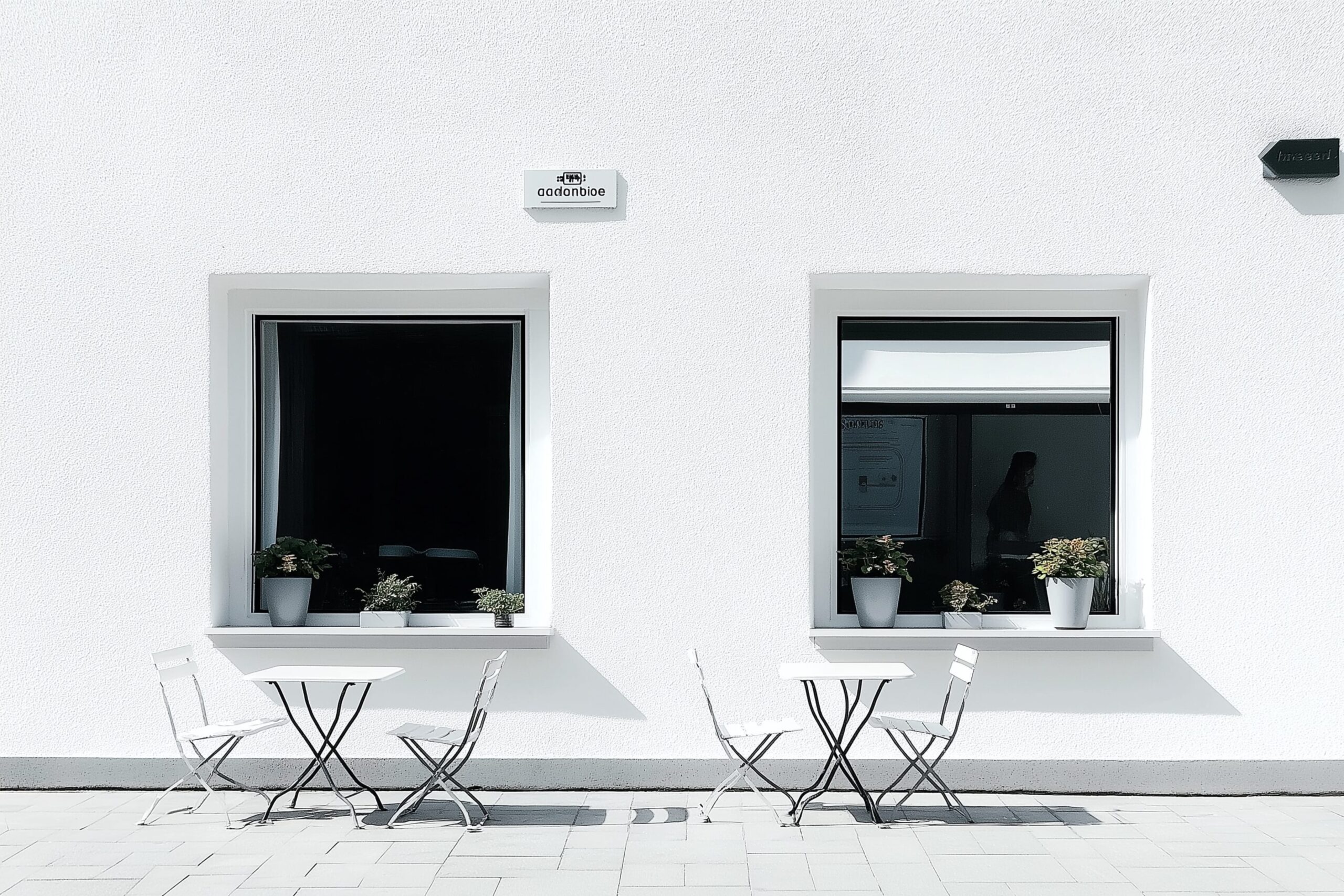検索タグ:カフェ、cafe、飲食店、オシャレ、お洒落、おしゃれ、外観、建物、建築、お店、店舗、フリー素材、フリー画像、AI生成画像、レトロ感、海外風、小さなカフェ、デザイン、画像、外装、無料画像、前景、カフェショップフロント、イメージ、白、ホワイト、真っ白、テラス