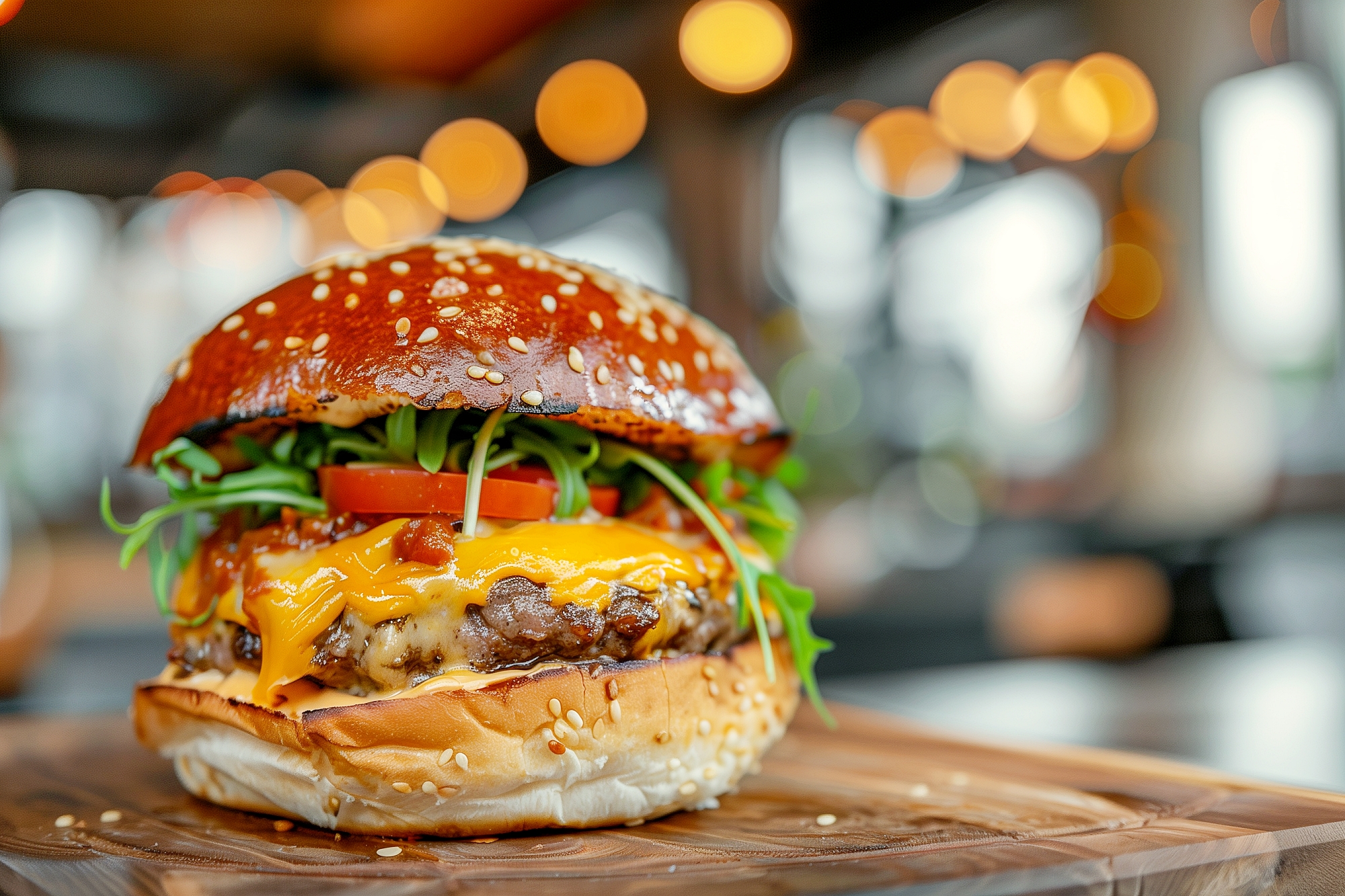 検索タグ:カフェ、cafe、店内、飲食店、オシャレ、お洒落、おしゃれ、テーブル、フリー素材、フリー画像、AI生成画像、ランチ、お昼ごはん、昼ご飯、食べ物、食事、フード、喫茶店、メニュー、サンドウィッチ、モーニング、朝食、朝ごはん、朝ご飯、グルメ、チーズバーガー、ファストフード、高カロリー