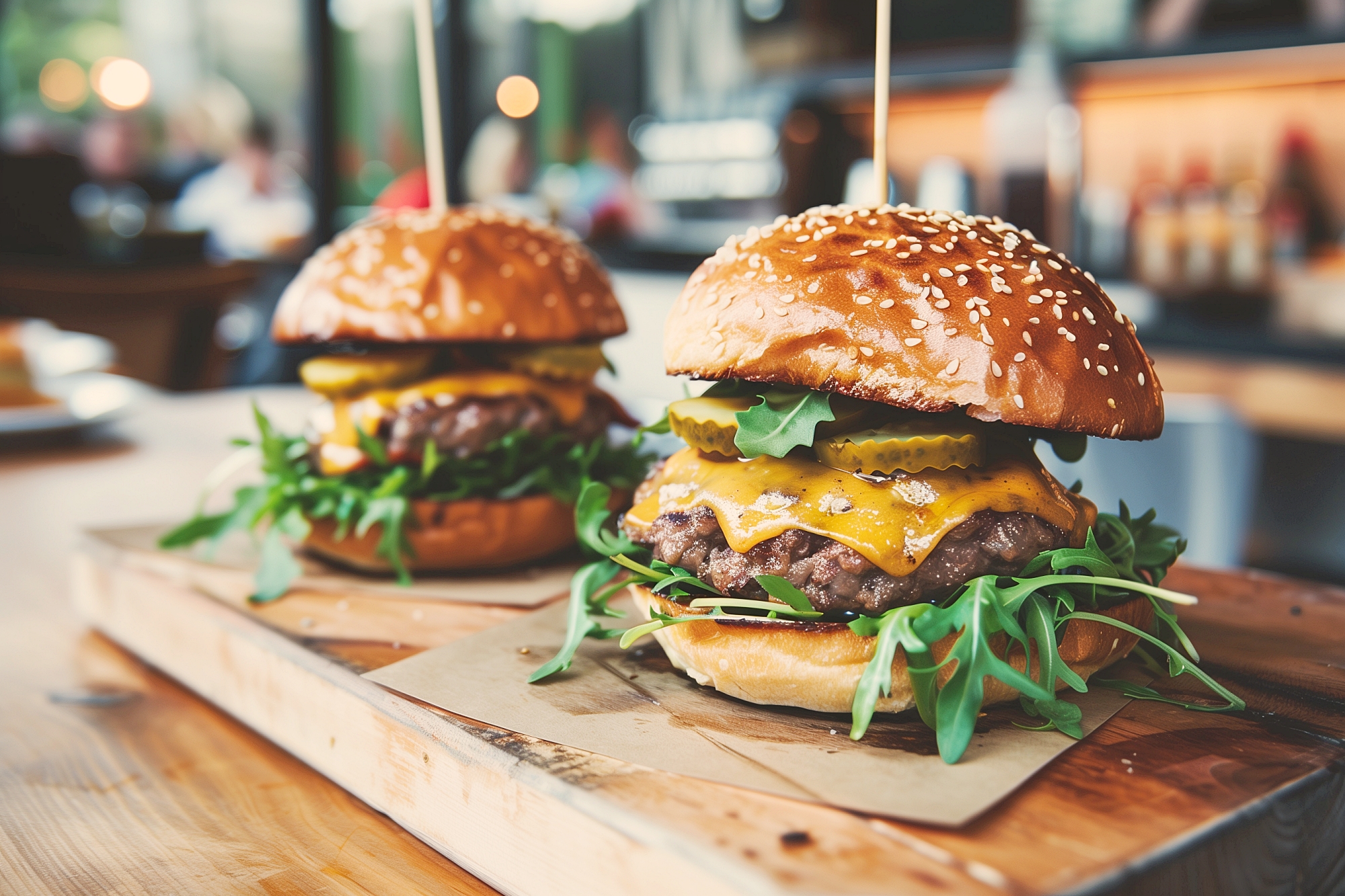 検索タグ:カフェ、cafe、店内、飲食店、オシャレ、お洒落、おしゃれ、テーブル、フリー素材、フリー画像、AI生成画像、ランチ、お昼ごはん、昼ご飯、食べ物、食事、フード、喫茶店、メニュー、サンドウィッチ、モーニング、朝食、朝ごはん、朝ご飯、グルメ、チーズバーガー、ファストフード、高カロリー