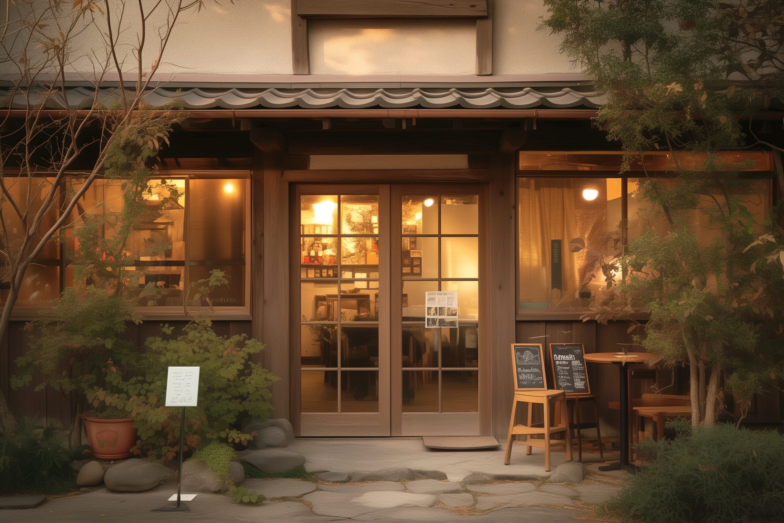 検索タグ:カフェ、cafe、飲食店、オシャレ、お洒落、おしゃれ、外観、建物、建築、お店、店舗、フリー素材、フリー画像、AI生成画像、モダン、飲食店、店、free、materials、image、shop、古民家、古い建物、レトロ、rétro、モダン、外装、古い