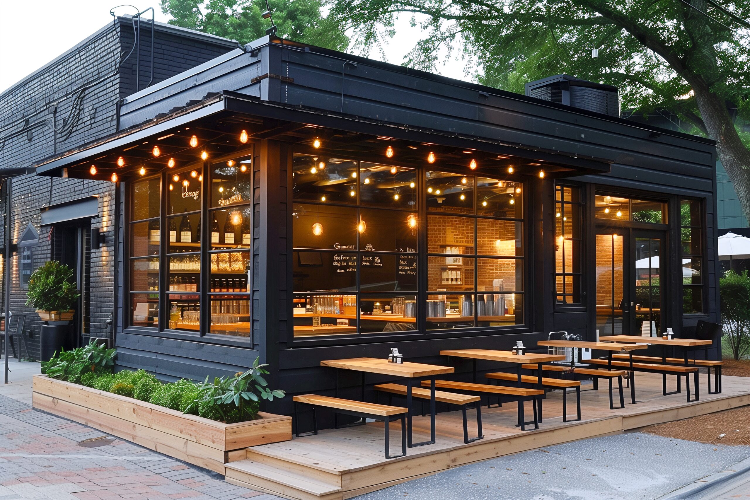検索タグ:カフェ、cafe、飲食店、オシャレ、お洒落、おしゃれ、外観、建物、建築、黒、ブラック、BLACK、フリー素材、フリー画像、AI生成画像、