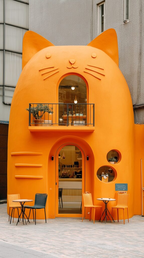 都会の街角にあるオシャレで小さなカフェの外観04